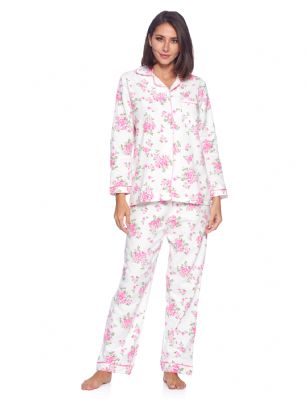 Casual Nights Women's Flannel Long Sleeve Button Down Pajama Set - White Pink Flower - Please use our size chart to determine which size will fit you best, if your measurements fall between two sizes we recommend ordering a larger size as most people prefer their sleepwear a little looser.Small: Measures US Size 4-6, Chests/Bust 35”-38" Medium: Measures US Size 8-10, Chests/Bust 37”-40" Large: Measures US Size 12-14, Chests/Bust 38”-42" X-Large: Measures US Size 14-16, Chests/Bust 42”-44" XX-Large: Measures US Size 16-18, Chests/Bust 44”-46" 3X-Large: Measures US Size 22, Chests/Bust 46”-48”4X-Large: Measures US Size 24, Chests/Bust 50”-54"Soft and lightweight Flannel Pajamas in a fun paisley pattern, coziest pajamas you'll ever own. Features Button down closure, Lace And Ribbon finish, elastic drawstring waist. These pj’s offer comfortable straight fit perfect for sleeping or curling up on the couch to watch a movie.