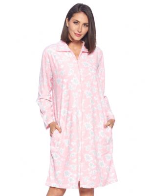 Casual Nights Women's Printed  Zipper Front Micro Fleece Robe Duster - Pink  Floral - This lightweight Cute and comfortable House coat with easy zipper front closure Duster for ladies from the Casual Night’s Loungewear and Sleepwear robes Collection, Thin fleece and light house robe, in beautiful feminine floral and paisley print pattern designs. this easy to wear bathrobe is made of 100% Poly Micro Fleece fabric, perfect for change of season, and cold winter nights! The sleep dresscoat Features: Long sleeves with full zip front closure for easy wearing and easy slipping on/off, cozy zip up neck, 2 roomy side hand pockets, knee length approx. 40” Shoulder to hem. This lounge wear muumuu dress has a relaxed comfortable fit and comes in regular and plus sizes M, L, XL, 2X, 3X. All year winter and summer versatile multi uses, throw over your clothes as house robe while cleaning, washing and cooking, wear around the house as relaxed home day waltz dress, a nightgown to sleep in the winter and cold nights as a sleepshirt dress, Our sleep robe gowns is perfect to use for maternity, labor/delivery, hospital gown. Makes a perfect Mother’s Day gift for your special loved ones, mom, older women or elderly grandmother. Even beautiful and comfortable enough for everyday use around the house. Please use our size chart to determine which size will fit you best, if your measurements fall between two sizes, we recommend ordering a larger size as most people prefer their sleepwear a little looser.