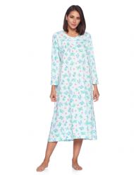 Casual Nights Women's Long Floral & Lace Henley Nightgown - Green