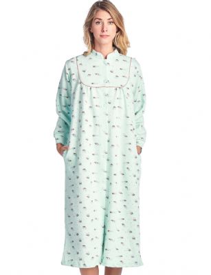 Casual Nights Women's Long Quilted Robe House Dress - Mint Rust - This Long Quilted Lounger Housecoat Robe from Casual Nights, exceptionally lightweight made from cotton blend soft to the touch fabric. Lounge robe  features; long sleeves, quilted detail, embroidered flowers, front hand pocket, 7 easy button front closure makes this lounger easy to wear. Mid-calf length measures approx. 44” Inches. A comfort loose fit style perfect for spas, shower houses, lounging, changing. sleeping and more.