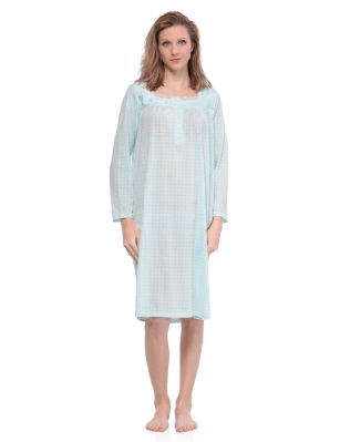 Casual Nights Women's Long Sleeve Dot Nightgown - Green - Size recommendation: Size Medium (4-6) Large (8-10) X-Large (12-14) XX-Large (16-18), Order one size up For a more Relaxed FitHit the sack in total comfort with this Soft and lightweight Cotton Blend Nightgown, Features Square neck, Approximately 38" from shoulder to hem, long sleeves, 5 button closure, detailed with lace and ribbon for an extra feminine touch. A comfortable fit perfect for sleeping or lounging around.
