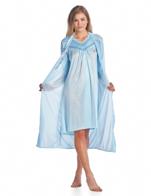 Casual Nights Women's Satin 2 Piece Robe and Nightgown Set - Embroidered Blue - Size Recommendations: Medium (2-4) Large (6-8) X-Large (10-12) XX-Large (14-16), Order size up for better lounging. Settle in for a quiet evening at home with this soft and cozy Sleepwear Set from Casual Nights, designed in silky satin fabric with a Sexy flowing silhouette. Robe features roomy armholes, self-tie closure, approx. 48" in length. Matching sleeveless chemise nightshirt measures approx. 36" in, different neck styles offered. Wrap up your night in something luxe. Effortless design perfect for Lounging, Relaxing or just layering on. See the selection of beautiful prints and solid colors, styled with delicate ruffles, elegant embroidery, lace, contrast trimming, or bow. Choose the set that suits you best!