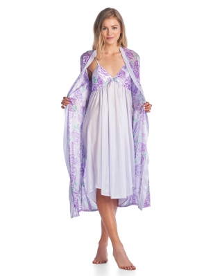 Casual Nights Women's Satin 2 Piece Robe and Nightgown Set - Purple - Size Recommendations: Medium (2-4) Large (6-8) X-Large (10-12) XX-Large (14-16), Order size up for better lounging. Settle in for a quiet evening at home with this soft and cozy Sleepwear Set from Casual Nights, designed in silky satin fabric with a Sexy flowing silhouette. Robe features roomy armholes, self-tie closure, approx. 48" in length. Matching sleeveless chemise nightshirt measures approx. 36" in, different neck styles offered. Wrap up your night in something luxe. Effortless design perfect for Lounging, Relaxing or just layering on. See the selection of beautiful prints and solid colors, styled with delicate ruffles, lace, contrast trimming, or bow. Choose the set that suits you best!