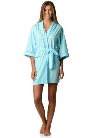 Wrap around in comfort with this Jersey Knit Kimono Short Robe from Casual Nights a classic favorite for everyday wear. Featuring a shawl collar, three-quarter sleeves, contrast color piping, matching self-Tie belt, Attached inner tie and 2 hand Pockets. Effortless Design perfect for Lounging, Relaxing or just layering on