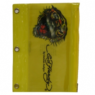 Ed Hardy Edie Tiger 3D Pencil Pouch - Yellow - This Ed Hardy Tiger  3D Pencil Pouch  makes a great gift for your child - or simply for the Ed Hardy fan. This super cute Ed Hardy case features the all over graphic design in 3D and zipper closure to keep your belongings safe and secure.  It also features holes to clip it into your binder. Your little princess will be thrilled and will definitely steal the show in school.